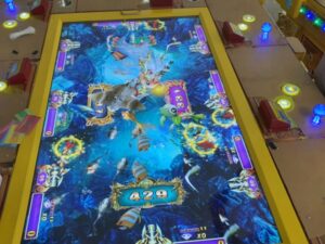 Máy chọi bom chọi cá, cách chơi giống máy đặt thú. Trên bàn phím hiển thị mức nhân thưởng của mỗi con. Sau khi đặt xong bấm nút bắn sẽ có 1 quả bom bay ra chọi ngẫu nhiên lên đàn cá trên màn hình. Trúng con nào sẽ nhân tương đương với số điểm hiển thị.