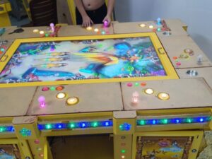 Máy chọi bom chọi cá, cách chơi giống máy đặt thú. Trên bàn phím hiển thị mức nhân thưởng của mỗi con. Sau khi đặt xong bấm nút bắn sẽ có 1 quả bom bay ra chọi ngẫu nhiên lên đàn cá trên màn hình. Trúng con nào sẽ nhân tương đương với số điểm hiển thị.